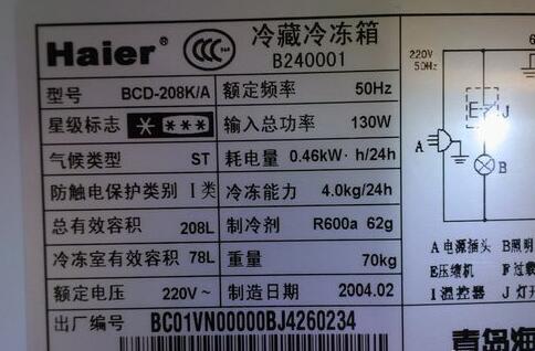 下面就以圖片中的某品牌電冰箱的銘牌作為事例,進(jìn)行簡單的解析。